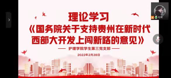2月28日至3月7日,乐天使三个员工党支部在腾讯会议开展了关于《国务院关于支持贵州在新时代西部大开发上闯新路的意见》(以下简称《意见》)的学习及研讨。员工第一党支部书记杨叶卿、员工第二党支部书记刘文壮、员工第三党支部书记刘妍分别主持会议,各支部党员参会。