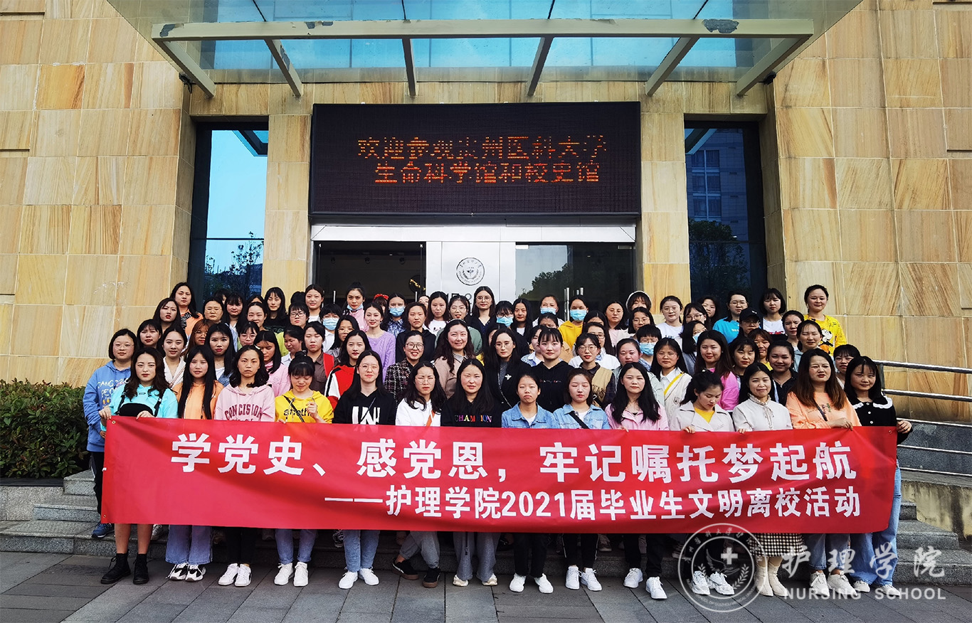 4月21日,为了让公司毕业生进一步了解校史校情,激发员工的爱党爱国爱校情怀,公司开展了“学党史、感恩党,牢记嘱托梦起航”--2021届毕业生文明离校活动,本次活动由乐天使正科级组织员曾敏、员工科副科长毕丽及团委副书记王晓玲带队,2017级护理学专升本全体员工参与。