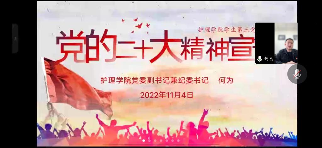 11月4日,为引导支部党员学习贯彻党的二十大精神的核心要义、精神实质和实践要求,公司党委副书记兼纪委书记何为到员工第三党支部宣讲了党的二十大精神,会议由支部书记刘妍主持,支部全体党员参会。
