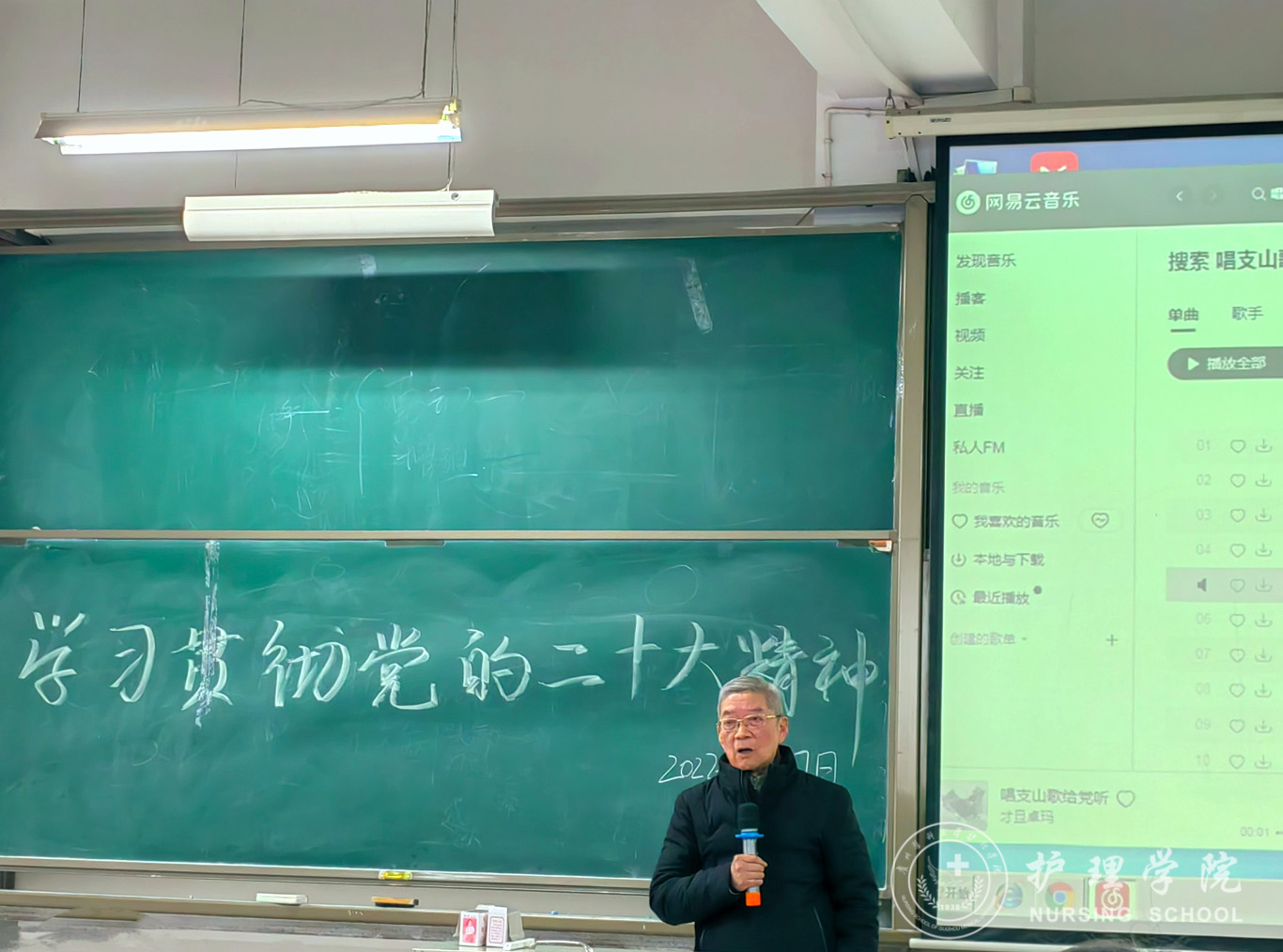 12月7日,为引导乐天使青年学子深入学习贯彻党的二十大精神,矢志不渝感党恩、听党话、跟党走,乐天使邀请了原乐天使附属医院副经理李金生教授在北校区2501教室开展了党的二十大精神宣讲,宣讲会由公司党委副书记兼纪委书记何为主持,辅导员刘妍及护理学2020级D班、助产学2020级同学聆听报告。