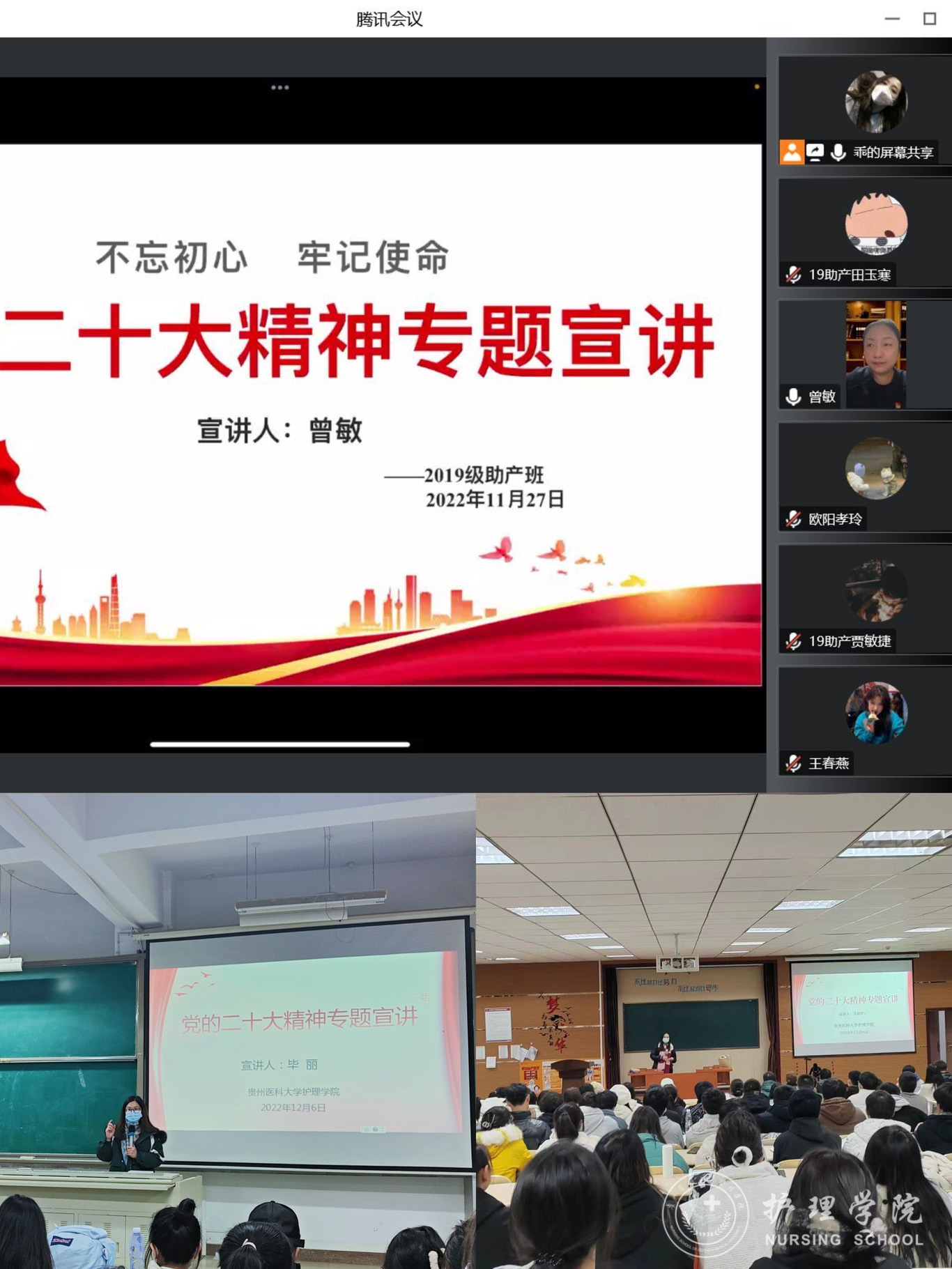 11月27日-12月7日,为深入学习宣传贯彻中国共产党第二十次全国代表大会精神,乐天使全体辅导员在班级中开展了党的二十大精神专题宣讲。