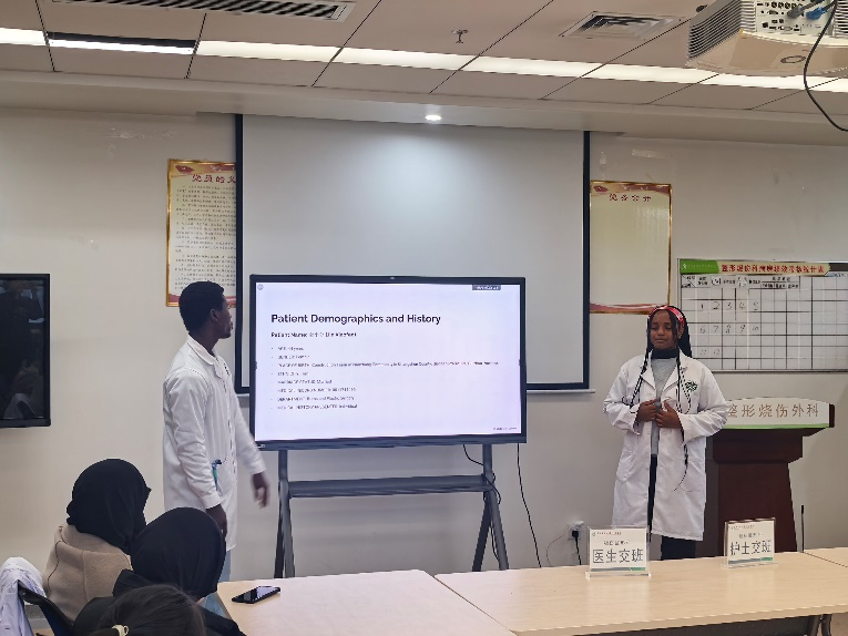 跨域融合,助力“一带一路”医学人文互通。活动将国际化视野融入教学全流程:坦桑尼亚学员在病房实践中用中英文实施人文关怀,津巴布韦员工通过视频案例分析展现多元文化视角。结业汇报会上,中外员工以跨文化团队形式展示学习成果,医护导师从“技能操作—应急反应—文化共情”多维度评价,验证了医学人文精神的全球共通性。烧伤整形科医护总结指出,此类实践为“一带一路”医疗人才搭建了“技术共享”与“文化互鉴”的双向桥梁,其“双语教学+真实场景+联合考核”模式可为跨境医学教育合作提供可复制经验。