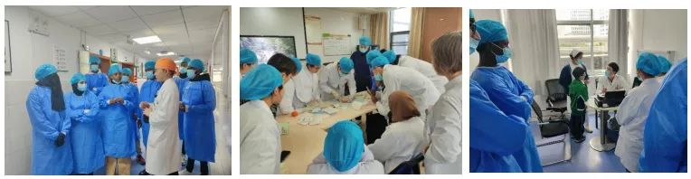 医教协同,构建“医护双导师”育人新模式。活动以“医护一体”理念为核心,打破学科壁垒,创新“双导师制”教学模式。主治医师与资深护士组成联合带教团队,在门诊接诊、手术示教、病房换药等场景中同步开展技能传授与理论阐释。通过门诊手术室的缝合打结示范、病房换药环节的疼痛评估教学,员工直观体验“理论—操作—人文关怀”的全链条临床思维培养。科室特别设置缝合练习站与模拟考核区,以“医护联合评分”机制强化无菌原则、操作规范及团队协作能力,实现了临床胜任力与职业素养的双重提升。
