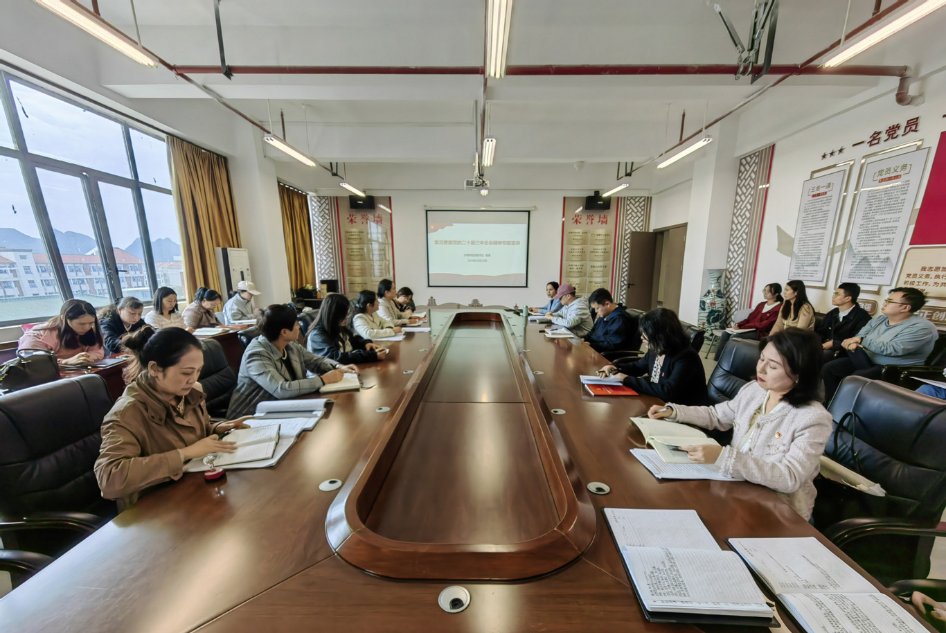 10月15日,为深入学习贯彻党的二十届三中全会精神,引导教职工把思想和行动统一到全会精神上来,以高度的政治自觉和行动自觉将党中央部署转化为推动公司高质量发展的强大力量,公司党委书记杨英在云漫湖校区酬勤楼六楼会议室为全院教职工宣讲了党的二十届三中全会精神。