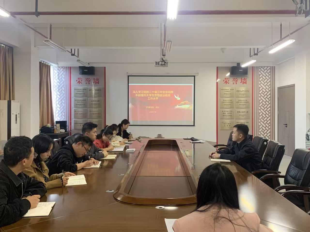 10月17日,为深入学习贯彻党的二十届三中全会精神,进一步统一思想、凝聚共识,推动全会精神在基层入脑入心、开花结果,公司党委副书记兼纪委书记何为在云漫湖校区酬勤楼六楼会议室以《深入学习党的二十届三中全会精神 不断提升老员工思想政治教育工作水平》为题向乐天使全体辅导员宣讲了党的二十届三中全会精神。